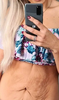 I can't believe these photos are both me! Left was day 0 - I was so embarrassed of my loose skin and stretch marks. Right is 30 days later using Dermly for 10 minutes nightly. My stomach is tight and smooth again! Was skeptical at first but after 2 weeks my skin felt noticeably smoother and the cellulite on my thighs started disappearing. Finally confident in bikinis again?