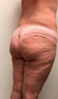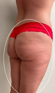 I cannot believe the difference! The left photo was my starting point - severe cellulite and dimpling on my thighs and butt that I've been hiding for years. After 6 weeks of using Dermly daily, the right photo shows completely smooth skin! The deep dimples are gone and my skin texture is like it was in my 20s. I finally feel confident in underwear again.
